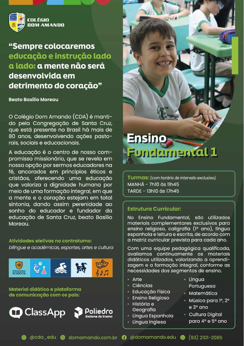 Com foco em destacar os valores que o colégio transmite ao longo de sua trajetória, a campanha evidenciou a excelência estrutural e pedagógica do Dom Amando, reforçando seu compromisso com a formação integral, humana e acadêmica dos estudantes.